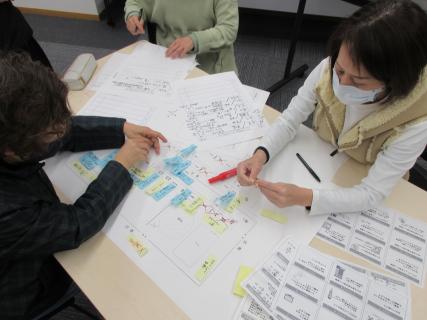 令和3年3月26日(金)京丹後市市役所峰山庁舎において、京丹後市女性連絡協議会主催で「避難所運営ゲームHUG」を学習しました。HUGゲームはカードに書いてあるいろいろな条件の避難者(男性・女性・子ども、持病がある、ペットと避難してきた等)を図上に示した避難場所に適切に、時間をかけないで配置していく避難所シミュレーションゲームです。
