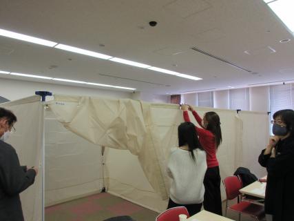 令和4年2月26日(土)京都テルサ東館2階 中会議室に於いて「男女共同参画視点からの避難所設営体験講座」を実施しました。