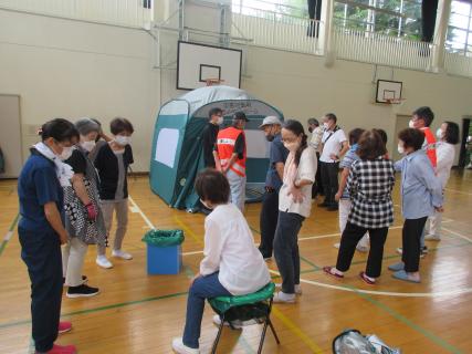 16名の参加で、避難所で必要なもの、設営方法、非常食の試食もでき、良い体験ができた。