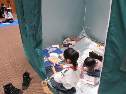 ダンボールベッドやプライベートテント、簡易トイレなどを実際に組み立てられて良かった。