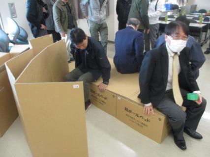 また、避難所で推奨されている『段ボールベッド』の組み立てを体験しました。