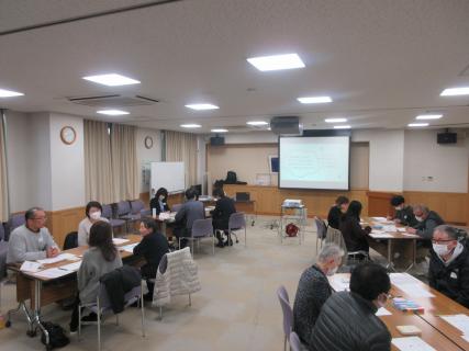 施設職員及び地域住民の計17名の参加があり、老人ホームの職員からは、入居者の安全を確保するためにはどうしたらよいか、避難所としてやっていけるかを心配されていました。近年、土砂災害、水災害が多く、電気、ガス、水道が止まることを想定して,何を用意すれば良いか考えるきっかけになったと思います。