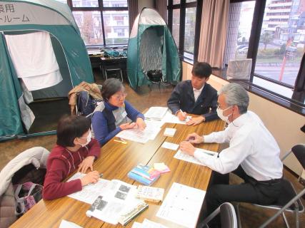 避難所設置に女性や弱者の視点で改善できること、より安全な方法を話し合いました。
