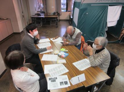 今回も、日本防災士会京都支部 防災士4名にお越しいただき、「避難所運営ゲームHUG」を体験しました。