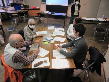 『きょうとみんなの防災カード』のワークショップを4~5名を1グループとし、4グループを作り、カードの問いに話し合いました。