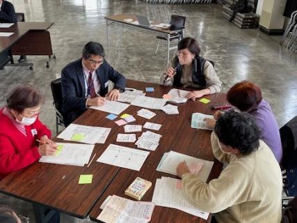 令和3年3月26日(金)京丹後市市役所峰山庁舎において、京丹後市女性連絡協議会主催で「避難所運営ゲームHUG」を学習しました。HUGゲームはカードに書いてあるいろいろな条件の避難者(男性・女性・子ども、持病がある、ペットと避難してきた等)を図上に示した避難場所に適切に、時間をかけないで配置していく避難所シミュレーションゲームです。