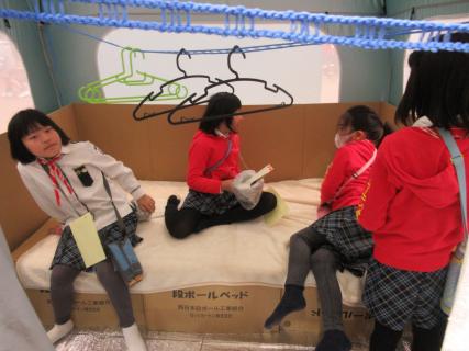ダンボールベッドやプライベートテント、簡易トイレなどを実際に組み立てられて良かった。