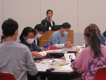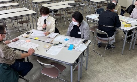 宇治市では、何度か防災カードのワークショップを開催していますが、今回は2時間、防災カードを各グループ3~4回じっくり意見を出し合い、情報共有をしました。